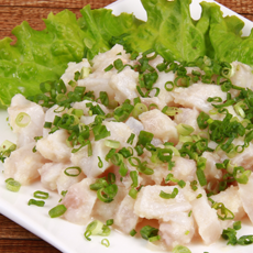 Peixe branco em cubos marinado em molho cítrico