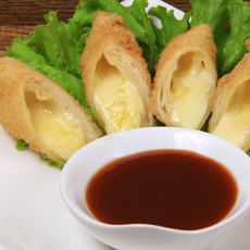 Crocante rolinho primavera de queijo servido com molho agridoce