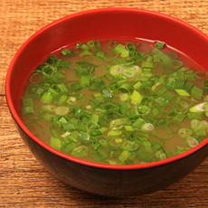 Sopa à base de soja, tofu e cebolinha