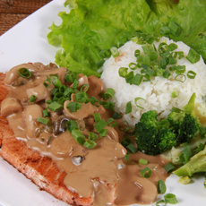 Risoto oriental com Filé Mignon.